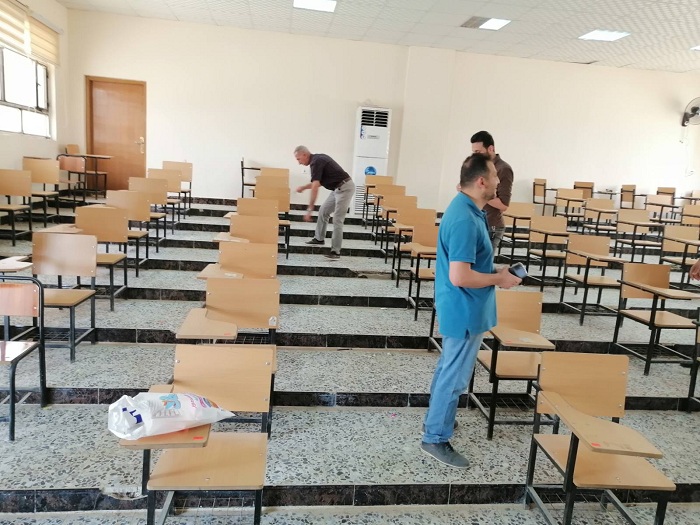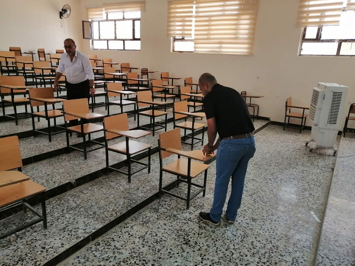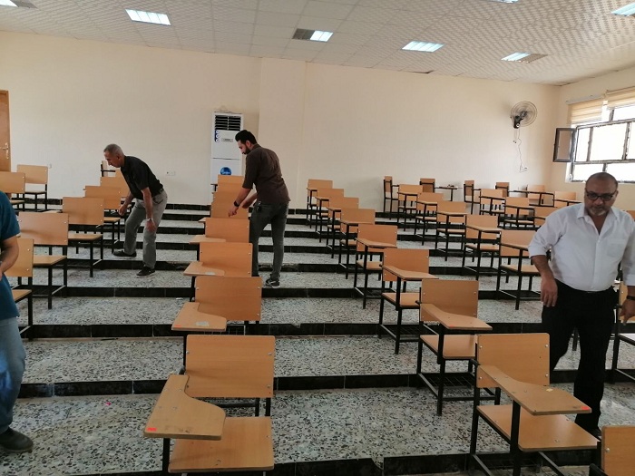 وقد هيأ كل من السادة روؤساء الاقسام واللجان الامتحانية المحترمين متطلبات هذه الامتحانات كافة يتقدَّمُها تهيئة وتنظيم القاعات الامتحانية وما يستدعيه الطلبة من خدَمات. وقد اتخذت اللجان الامتحانية كافة التدابير الوقائية حرصا على سلامة الطلبة من توفير الكمامات والكفوف والمعقمات ، وتوفير الانترنيت ، وشاشات العرض لمراقبة الامتحانات الالكترونية.