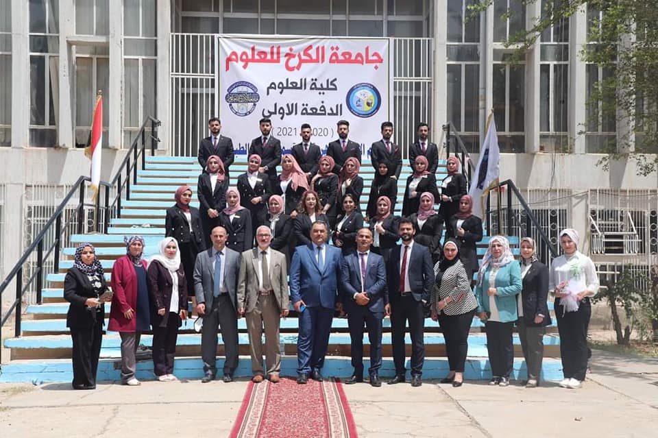 حيث شارك السيد مساعد رئيس جامعة الكرخ للعلوم الاستاذ المساعد الدكتور لؤي كاظم عبود الطلبة فرحتهم بالصورة التذكارية وعبر سيادته خلال كلمة ألقاها على الطلبة عن سعادته وفرحته بتخرج اول دفعة من كلية العلوم حيث شاركهم الصورة التذكارية وأثنى على جهودهم مباركاً عطائهم العلمي في الاجتهاد والتفوق وواعدا بدعمهم بعد تخرجهم في الانخراط في سوق العمل.