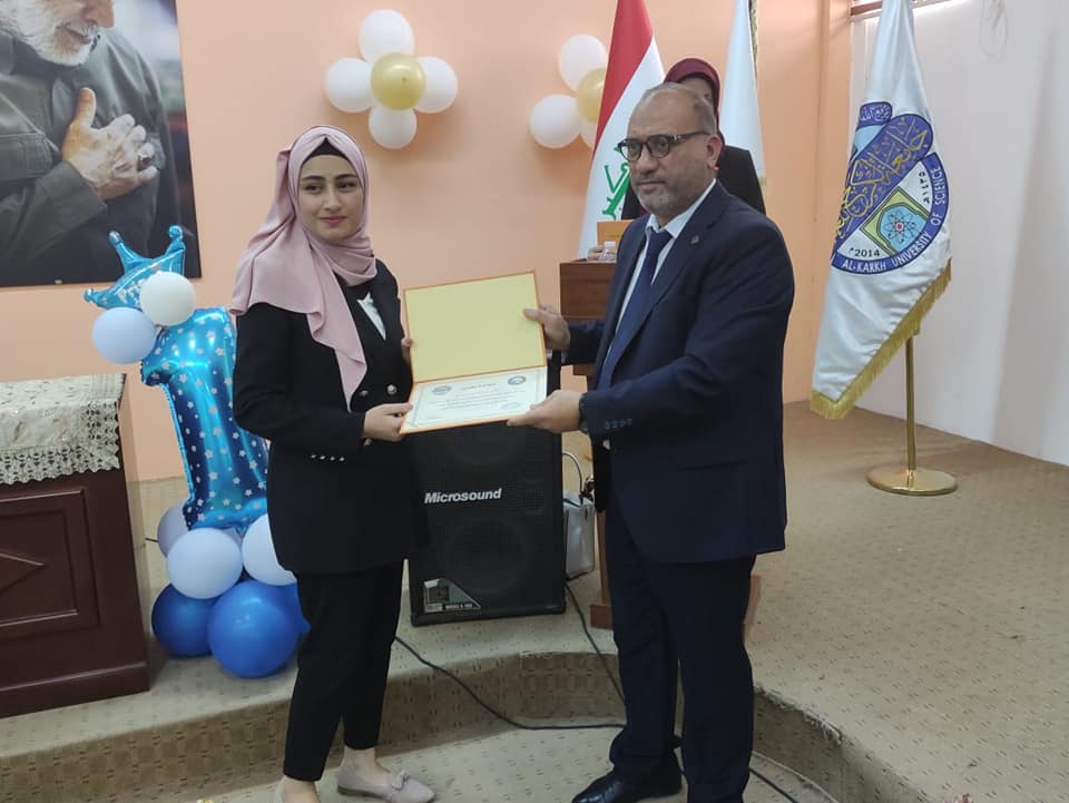 وقد أبدى الطلبة سعادة غامرة في هذه اللحظة التذكارية كونهم الدفعة الأولى التي تخرجت من كلية العلوم في جامعة الكرخ.