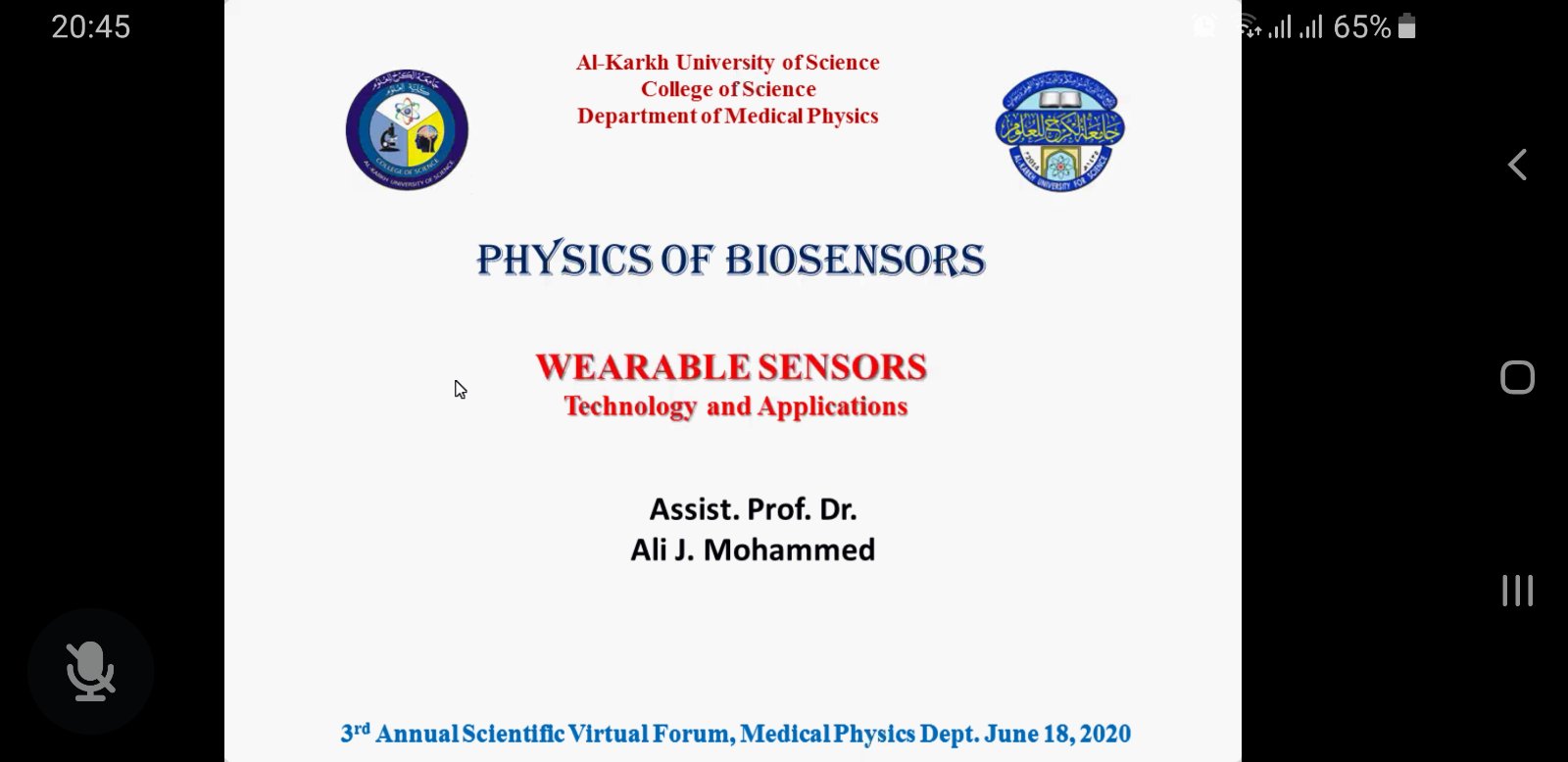 برعاية رئيس جامعة الكرخ للعلوم الاستاذ الدكتور ثامر عبد الامير حسن المحترم وباشراف مباشر من قبل عميد كلية العلوم ا.م.د. براق يحيى كاظم المحترم نظمت كلية العلوم / قسم الفيزياء الطبية ندوتها العلمية الثالثة الافتراضية بعنوان (الفيزياء الطبية … تكنولوجيا وتقانات متقدمة في خدمة المؤسسات الصحية) في يوم الخميس المصادف 18 حزيران 2020 وعلى تطبيق Free Conference Call، حيث تضمنت الندوة جلستين علميتين.