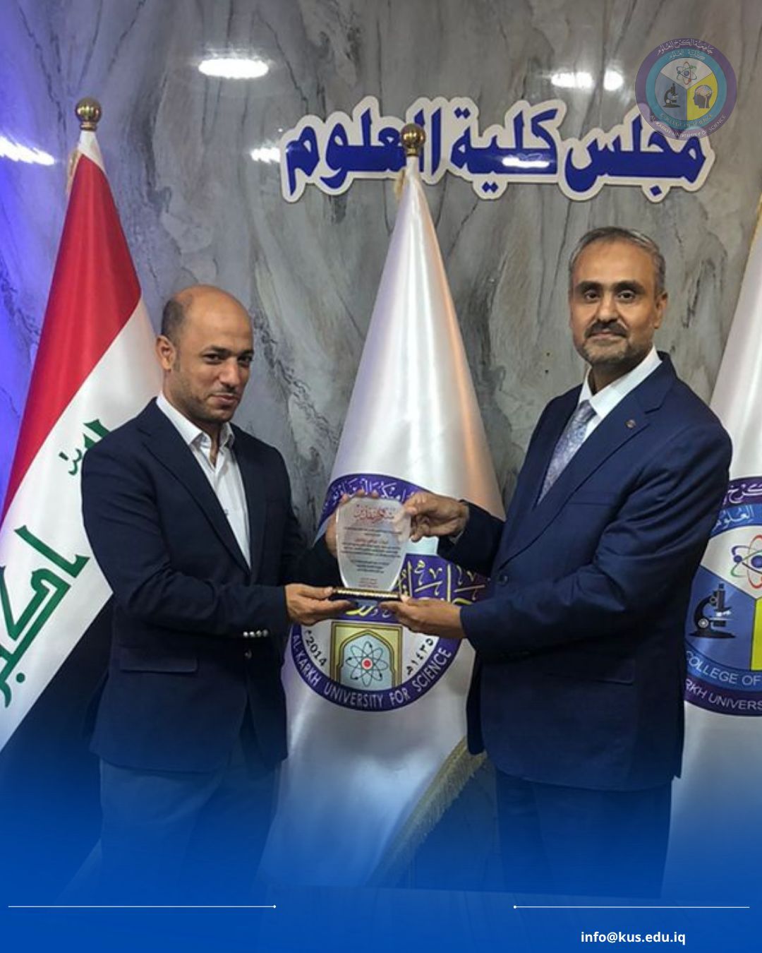 كرّم عميد كلية العلوم في جامعة الكرخ الأستاذ الدكتور عدي هادي رؤوف، كل من الأستاذ المساعد الدكتور حسام جاسم محمد، معاون العميد للشؤون الإدارية، والمدرس الدكتور م. د. غياث عباس فاضل، معاون العميد للشؤون العلمية، بمناسبة انتهاء فترة تكليفهم في …
